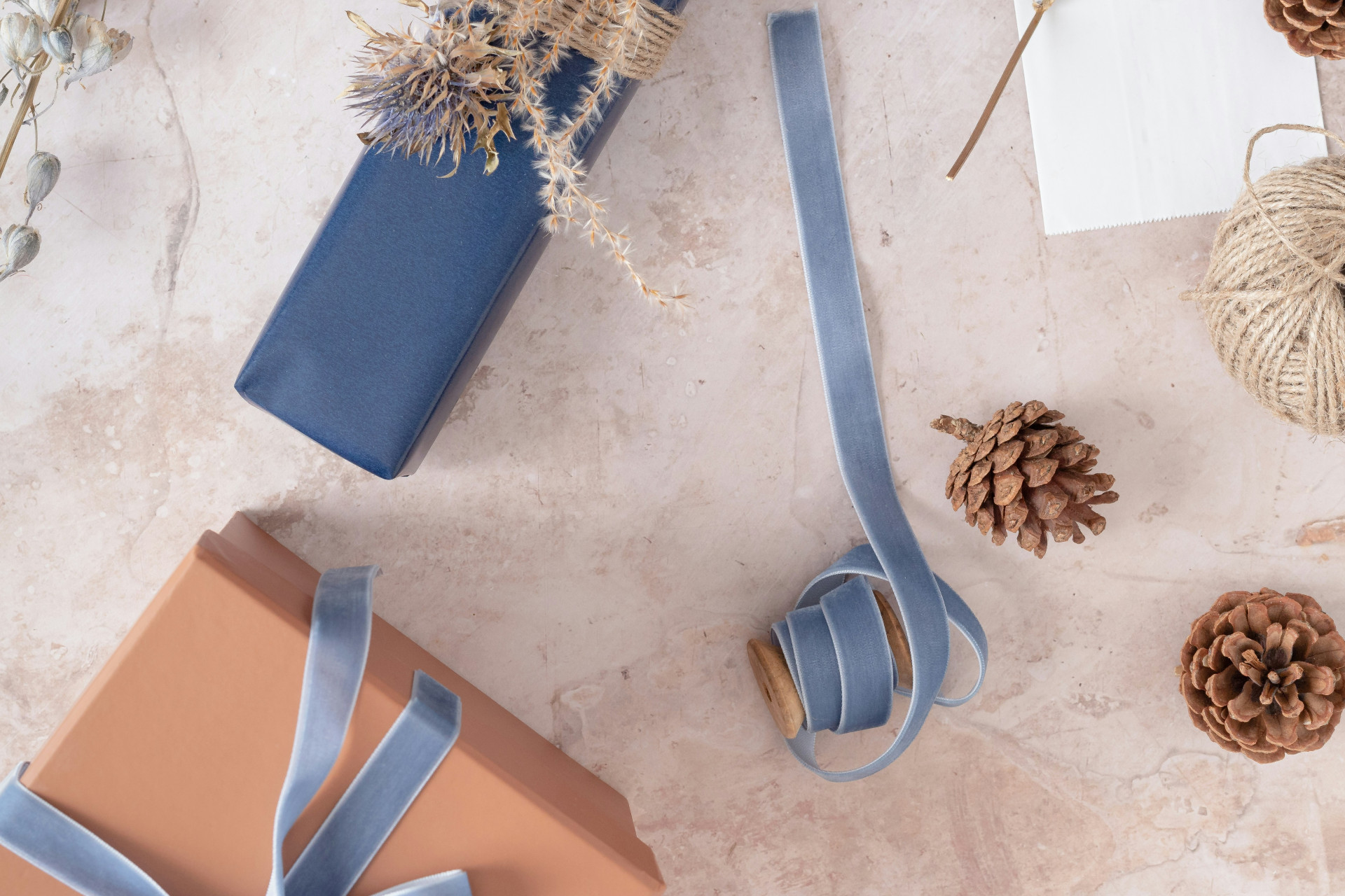 Pappersband och band av jute, hampa eller bomull blir allt mer populära som miljövänliga alternativ. De ger ett modernt, nordiskt uttryck och passar bra till gåvor inslagna i återvunnet papper.